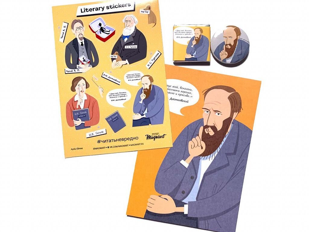 ![Наклейки с русскими писателями]()