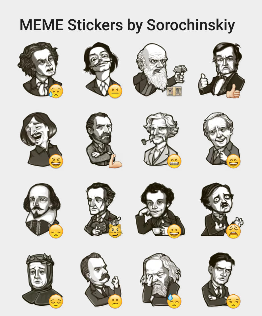 ![Стикеры с писателями]()