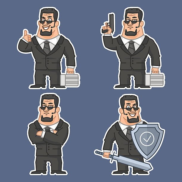 Охранник в разных позах