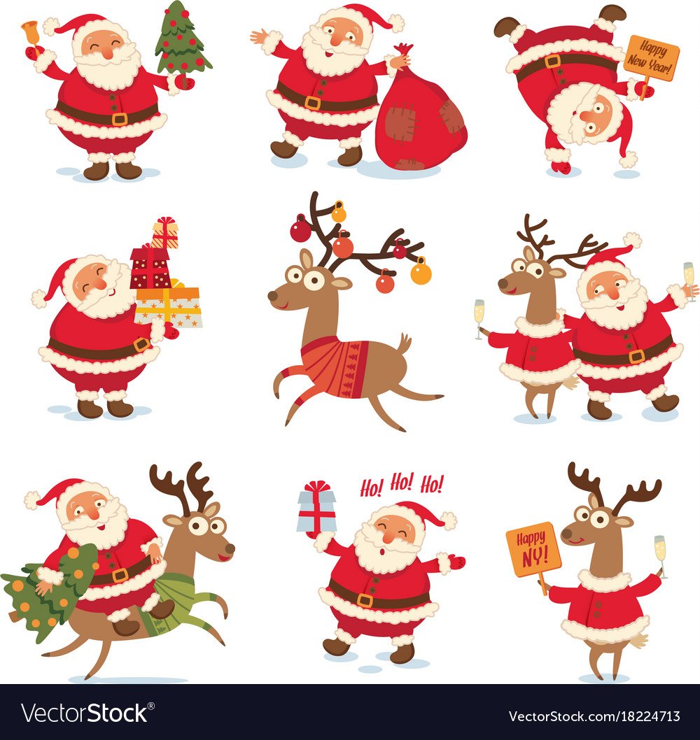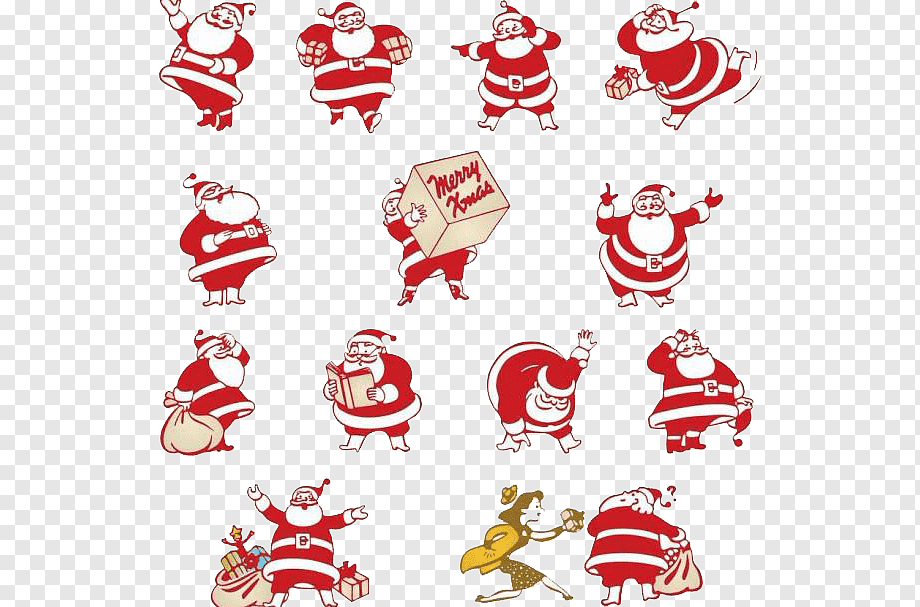 ![Санта Клаус в разных позах]()