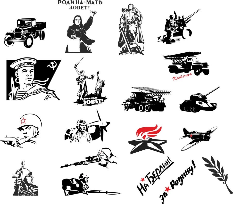 Трафареты наклейки к 9 мая