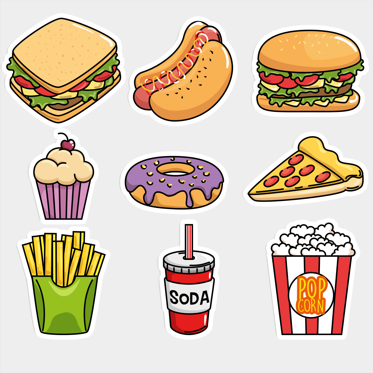 Наклейки на тему фаст фуд