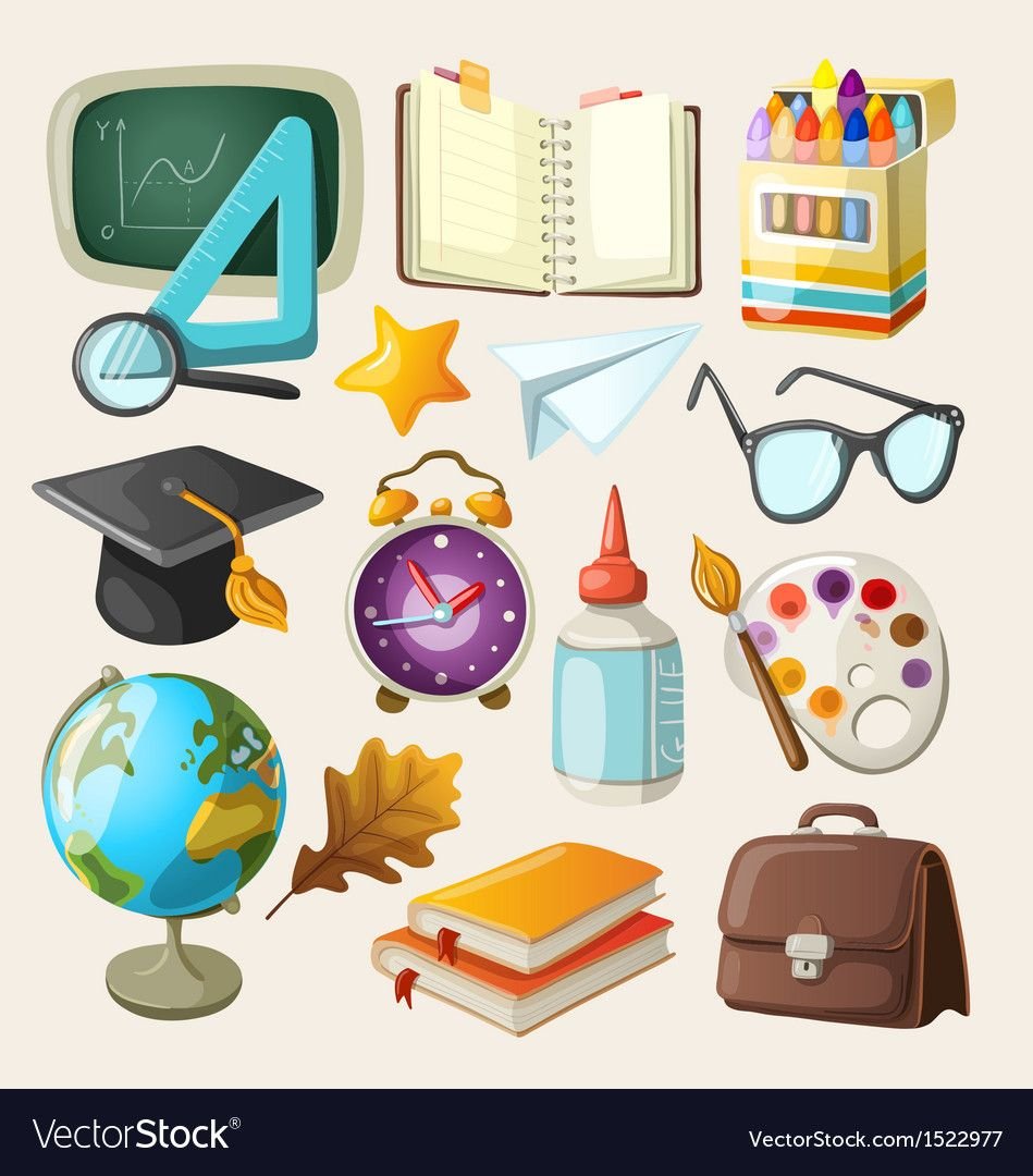 ![Школьные предметы иллюстрация]()