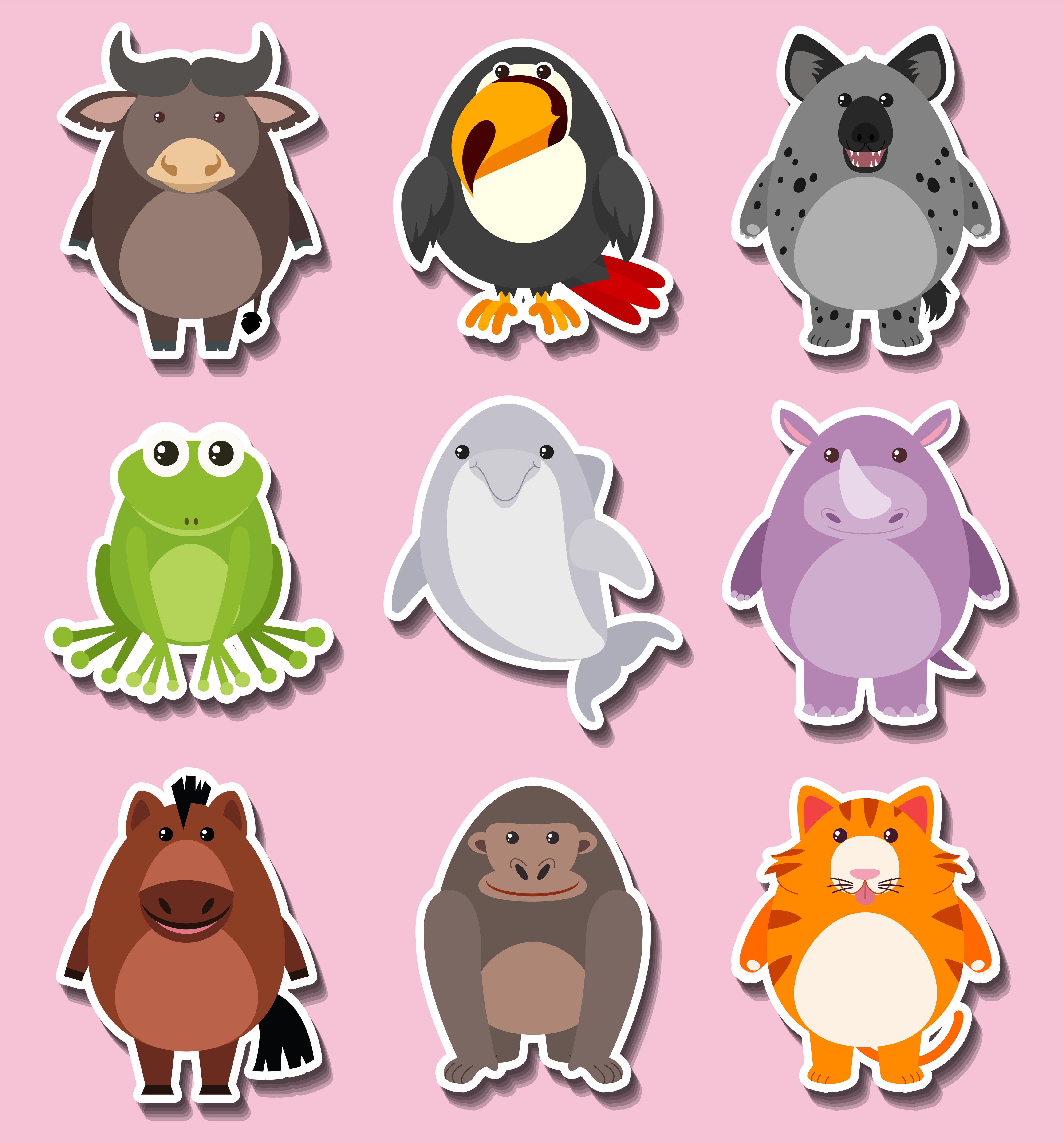 Животные наклейки вектор