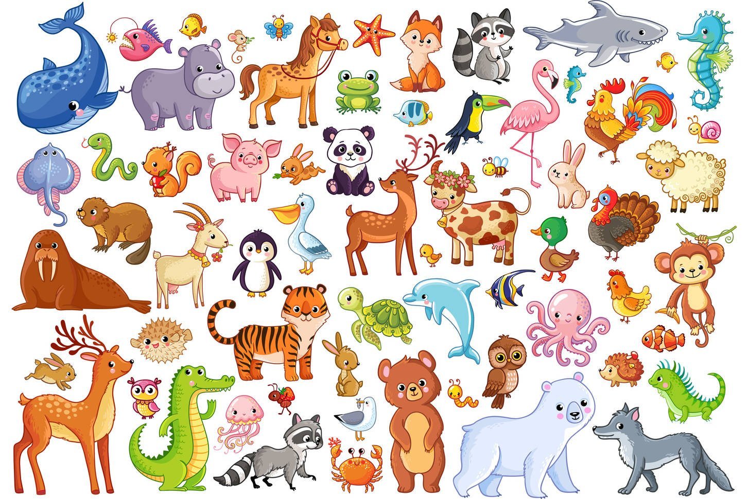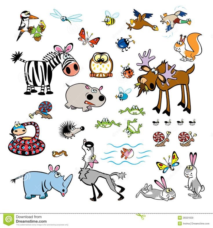 Много мультяшных животных