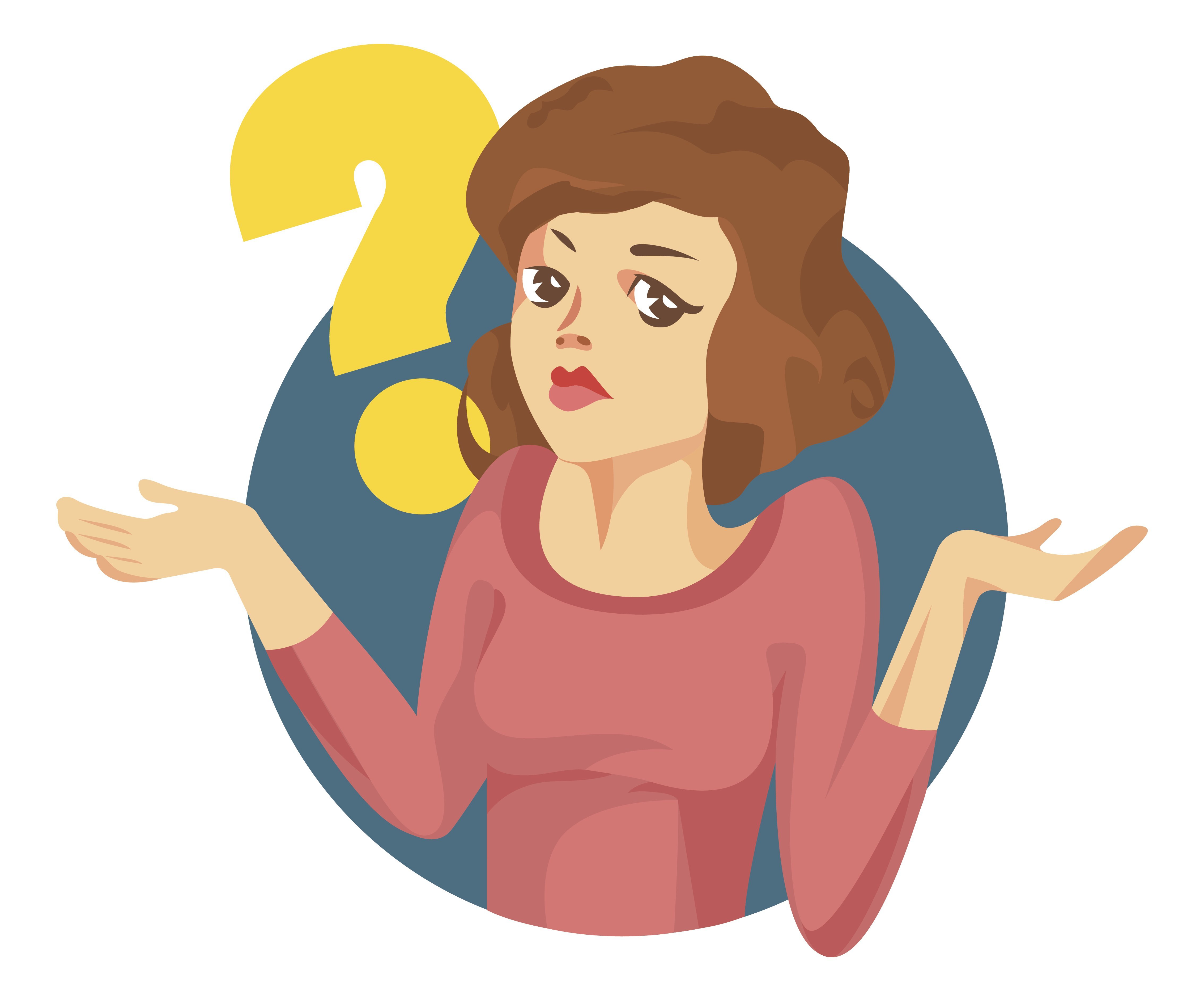 ![Векторная иллюстрация девушка с вопросом]()
