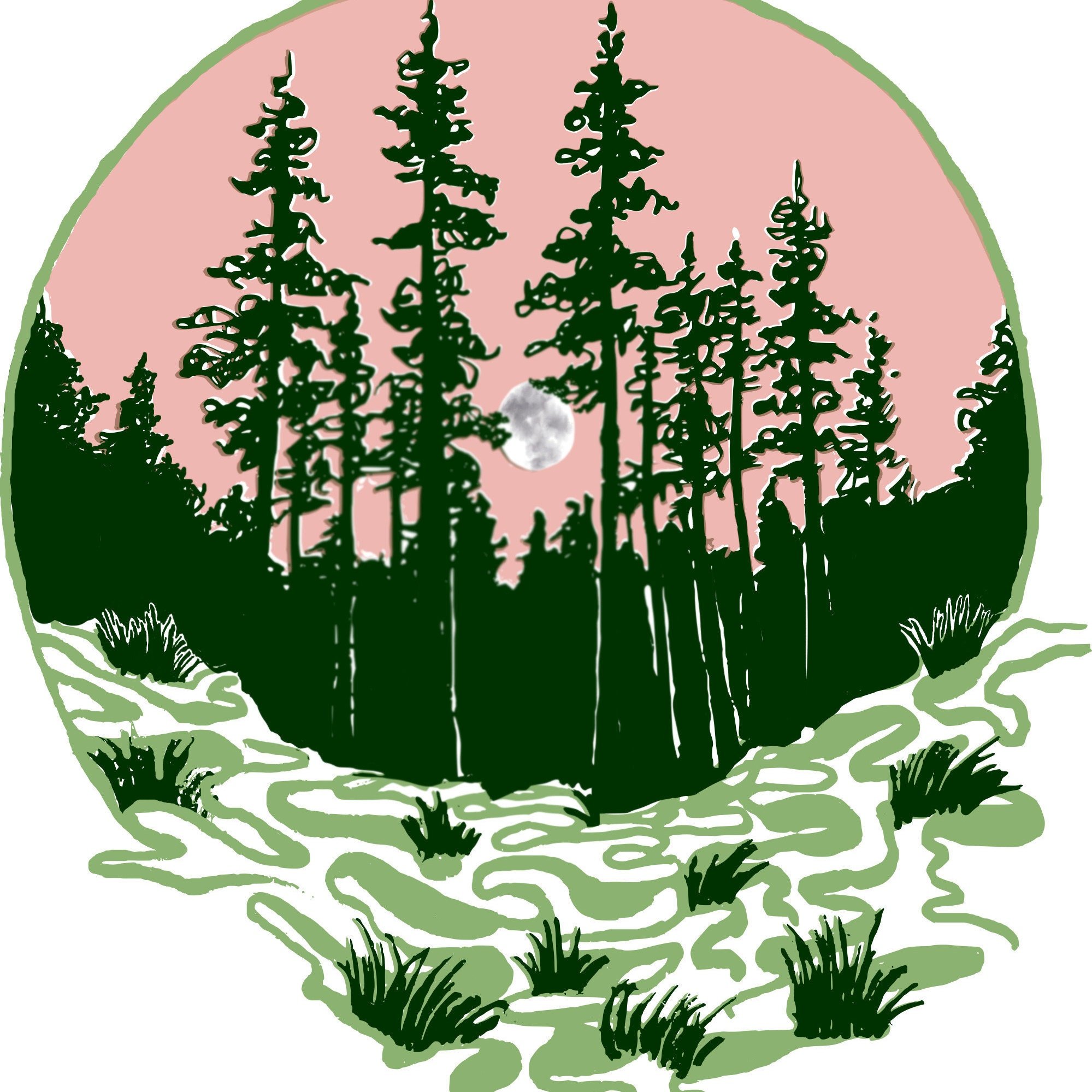 Акварельный пейзаж в круге