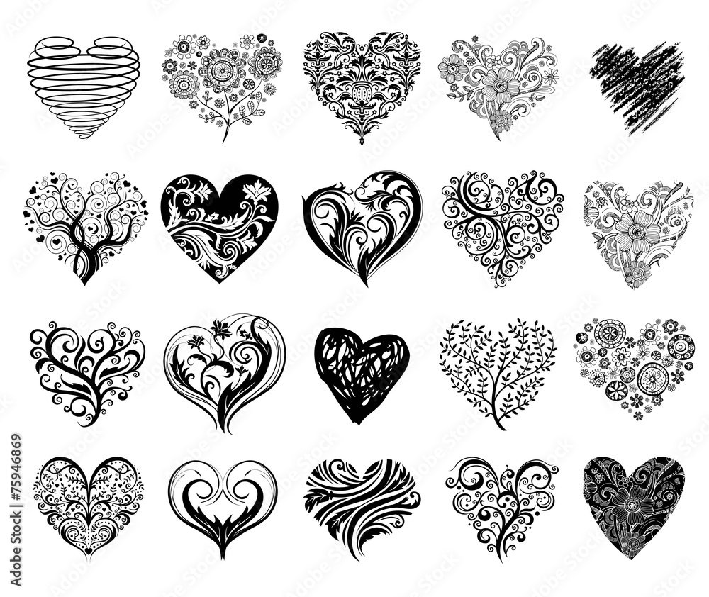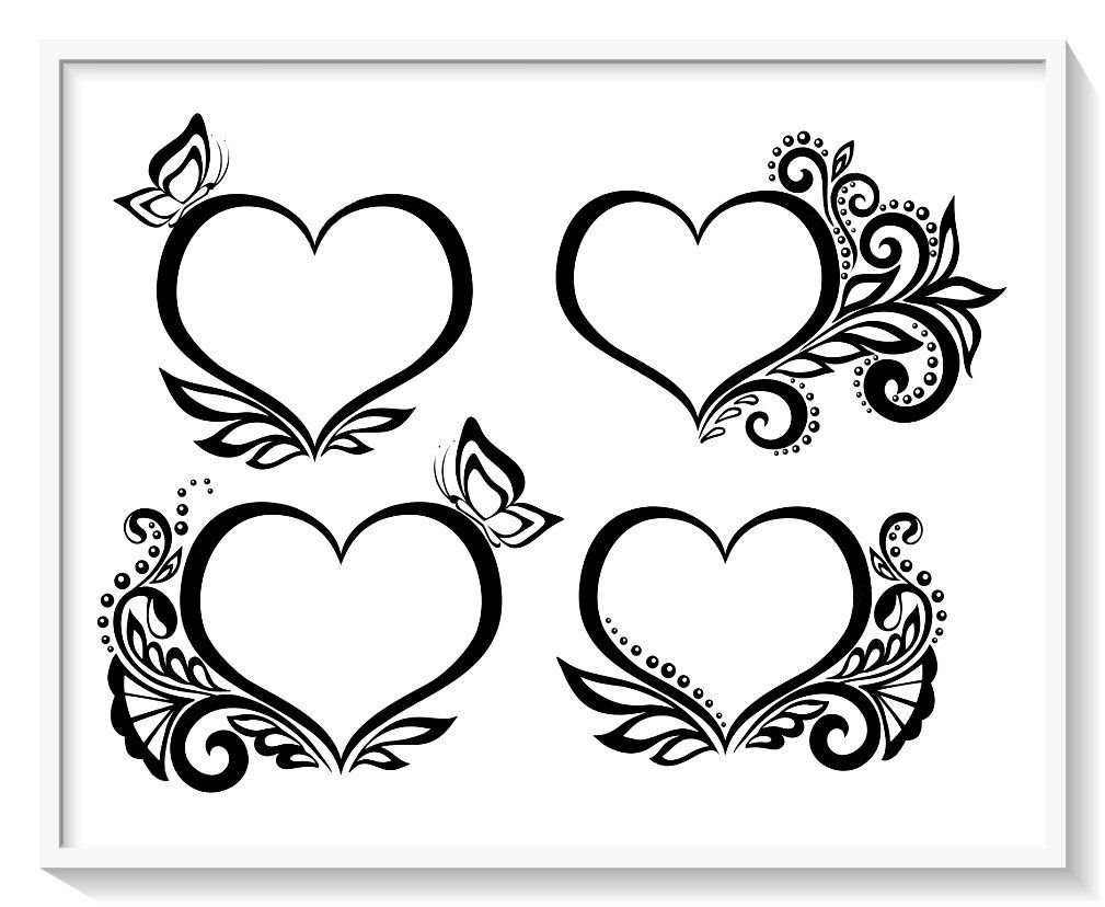 ![Красивое сердечко с узорами черно белое]()