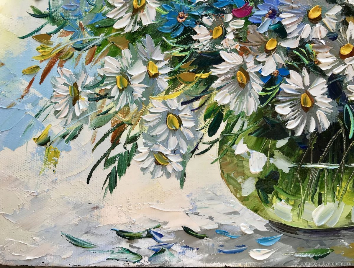 Букет ромашек живопись маслом