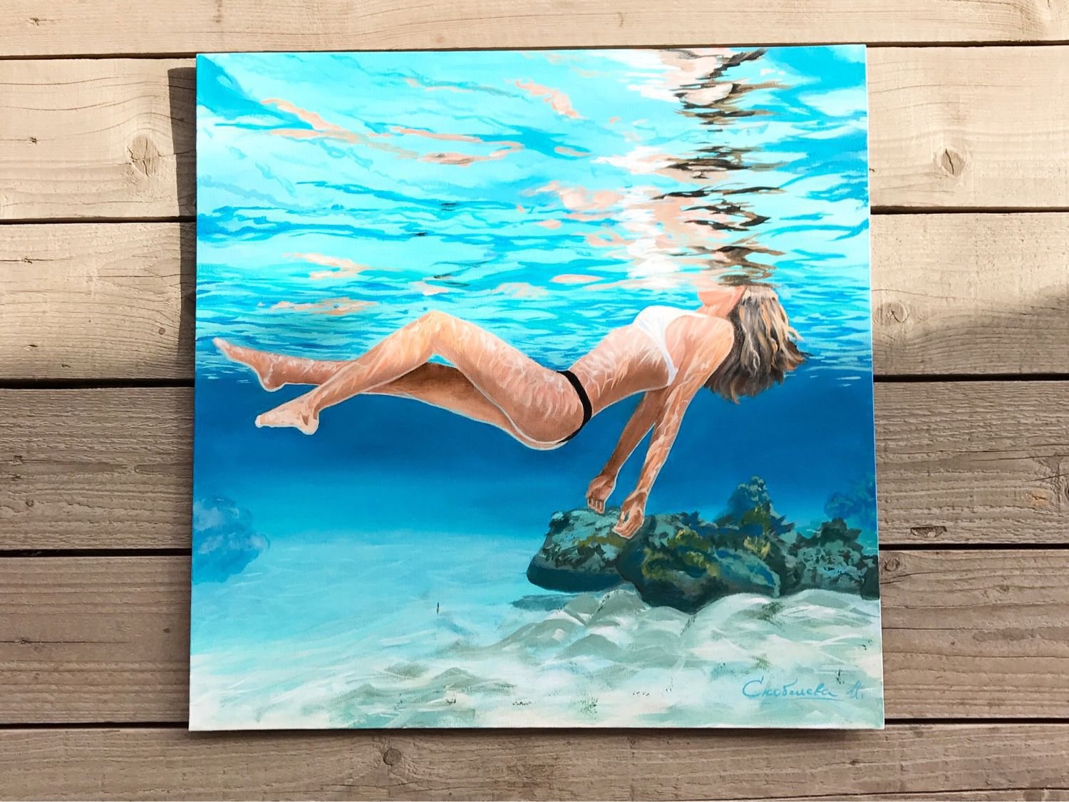 Девушка под водой на холсте