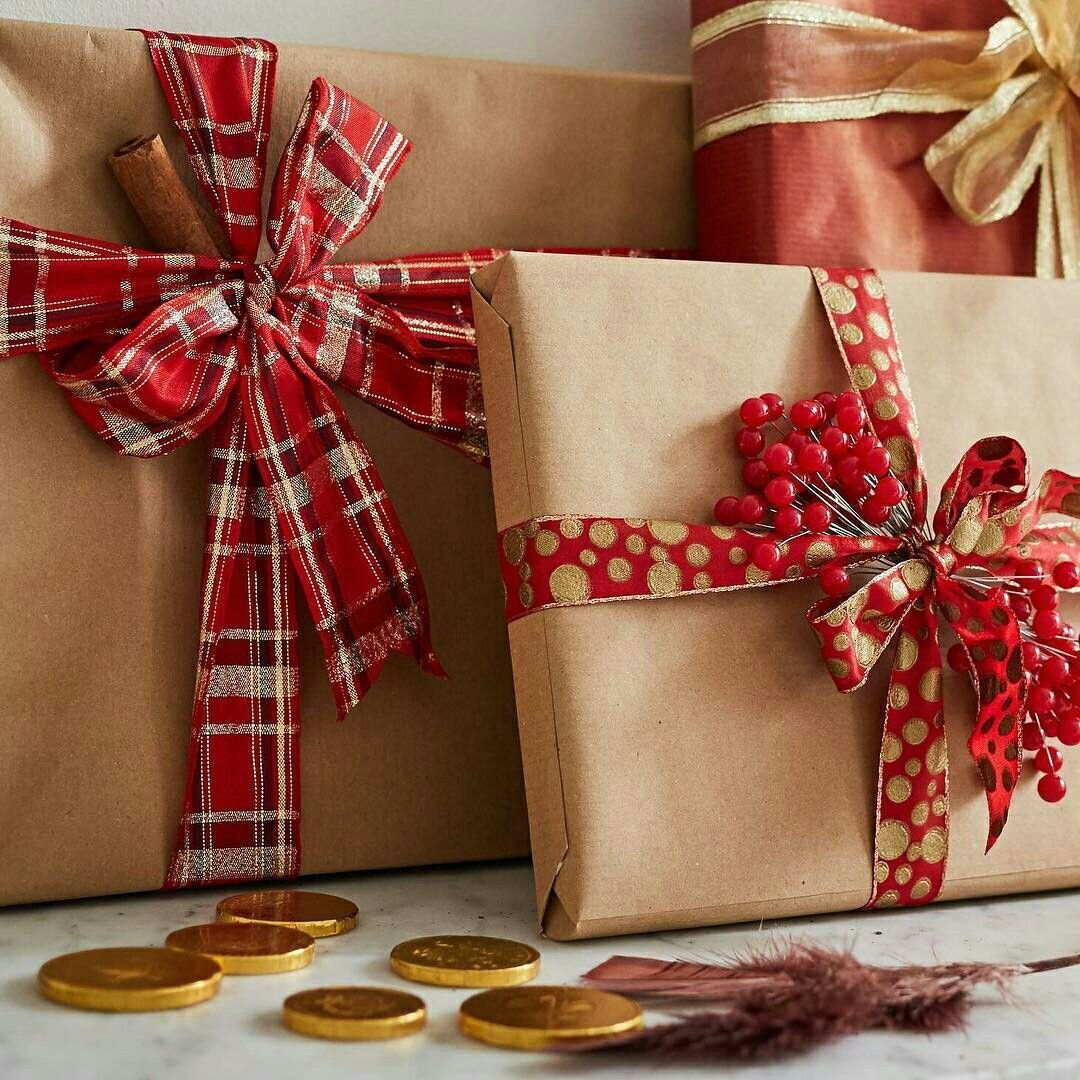 Красивая упаковка подарка в крафтовую бумагу