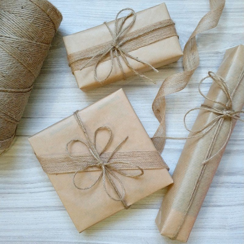 Упаковка в крафтовую бумагу с бечевкой