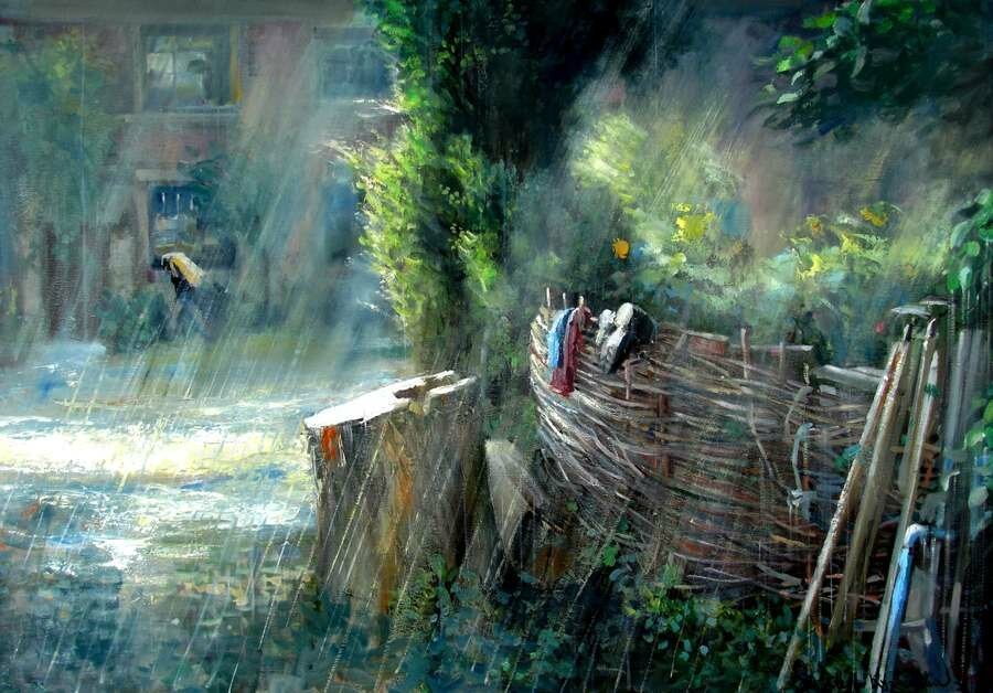 Дождь холст - это удивительное явление природы, которое зачастую воспринимается как искусство на самом деле. Когда дождевые капли падают на поверхность холста или любого другого материала, они создают уникальные и неповторимые узоры и рисунки. Эти абстрактные композиции могут вдохновлять и вызывать различные эмоции у наблюдателя. Они могут быть нежными и романтичными, когда тонкие капельки растекаются по поверхности, или же могут создавать динамичные и энергичные образы, когда дождь идет сильно и быстро. Дождь холст является прекрасным объектом для фотографии и источником вдохновения для художников. В этой природной симфонии, дождь становится невидимым художником, который создает неповторимые произведения искусства на своем холсте.