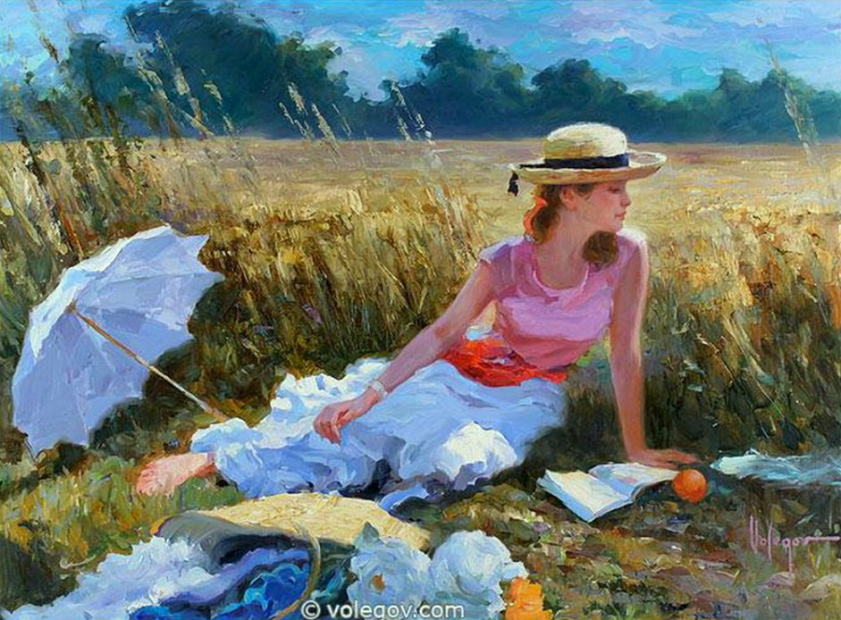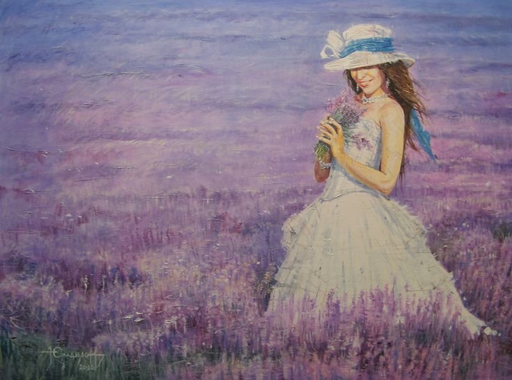 Живопись девушка в поле