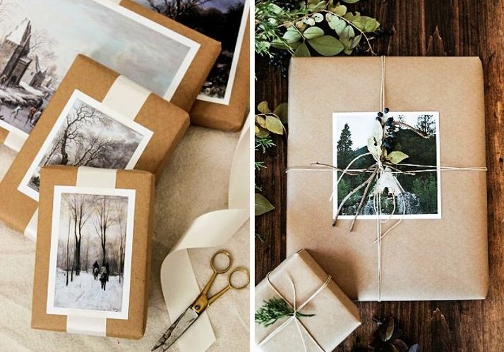Упаковка подарков крафтовой бумагой и бечевкой