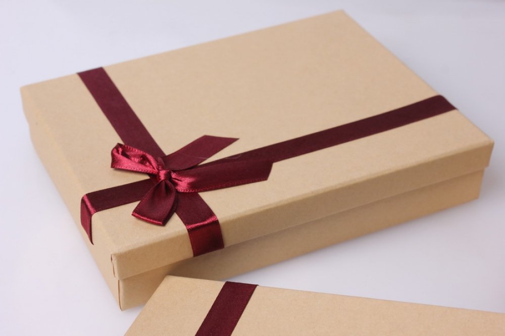 Подарок в крафтовой бумаге с лентой