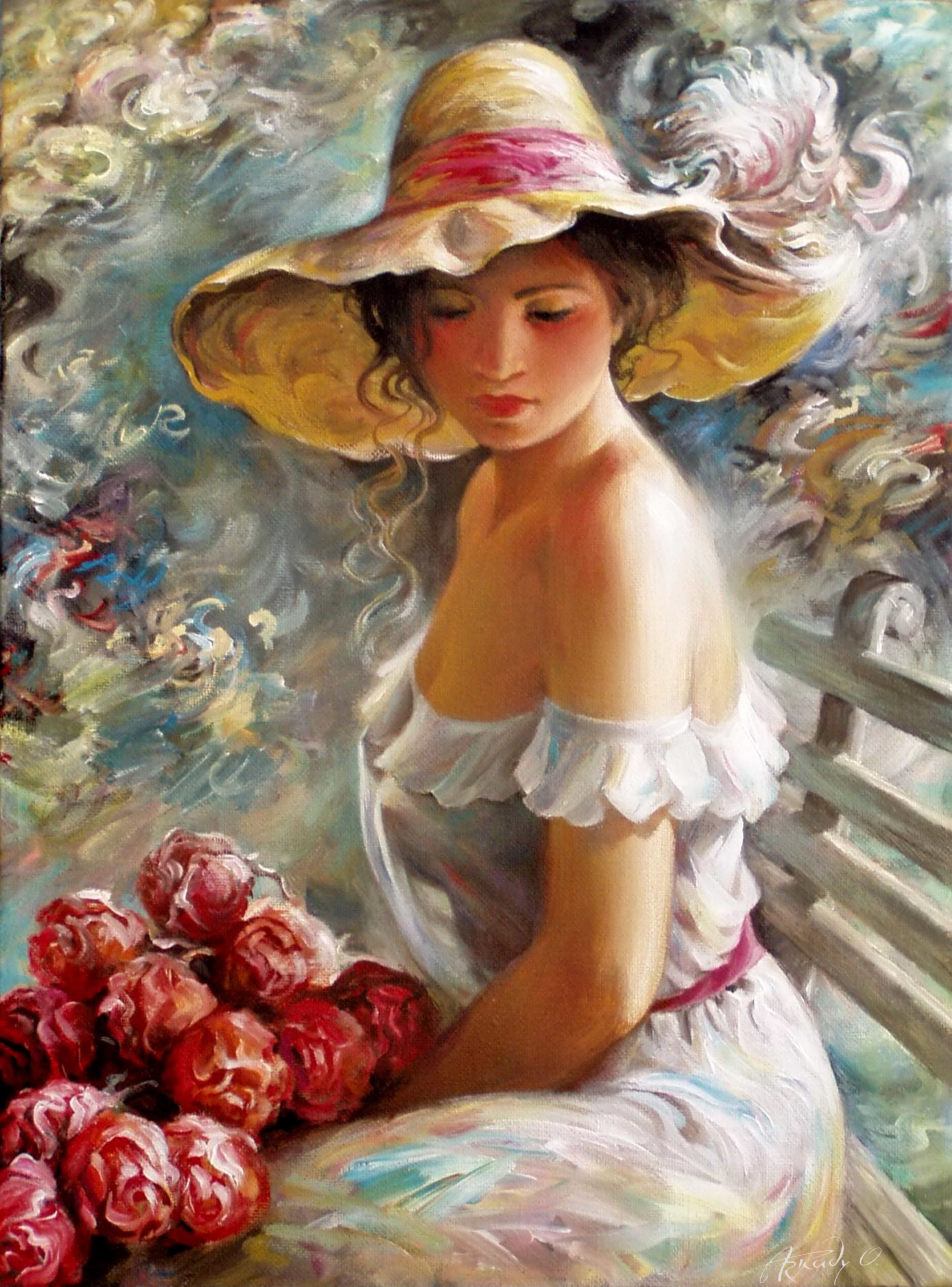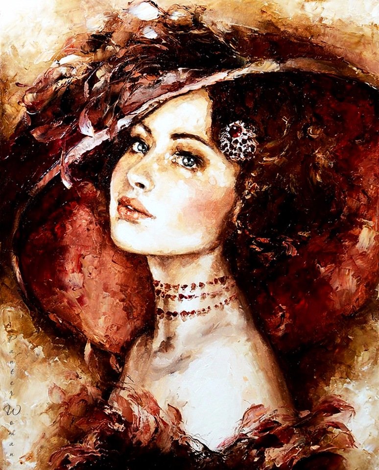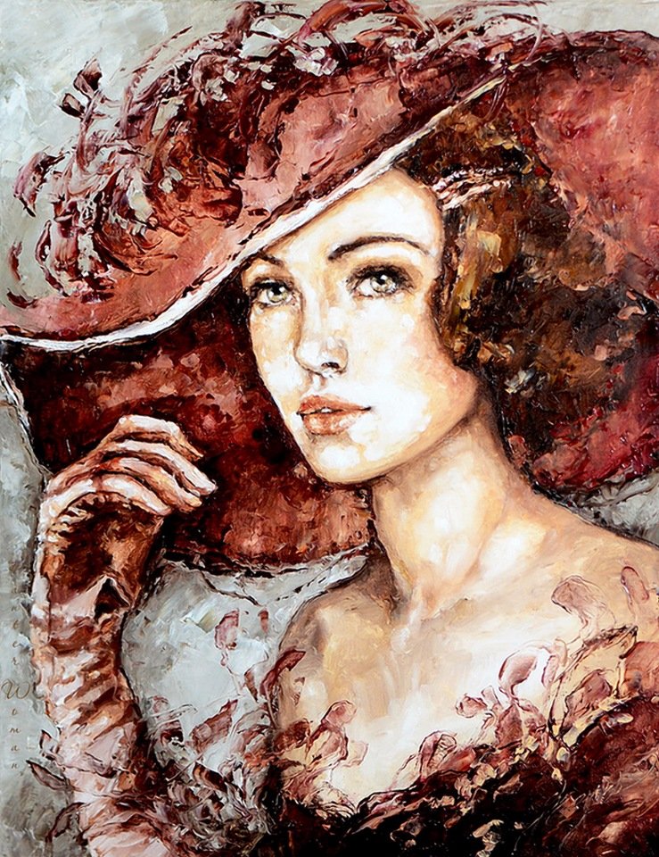Картина девушка в шляпе