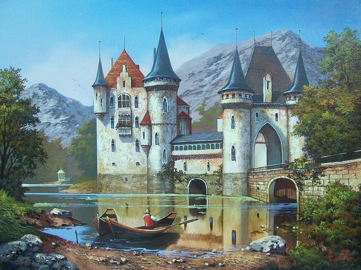 Средневековый замок живопись