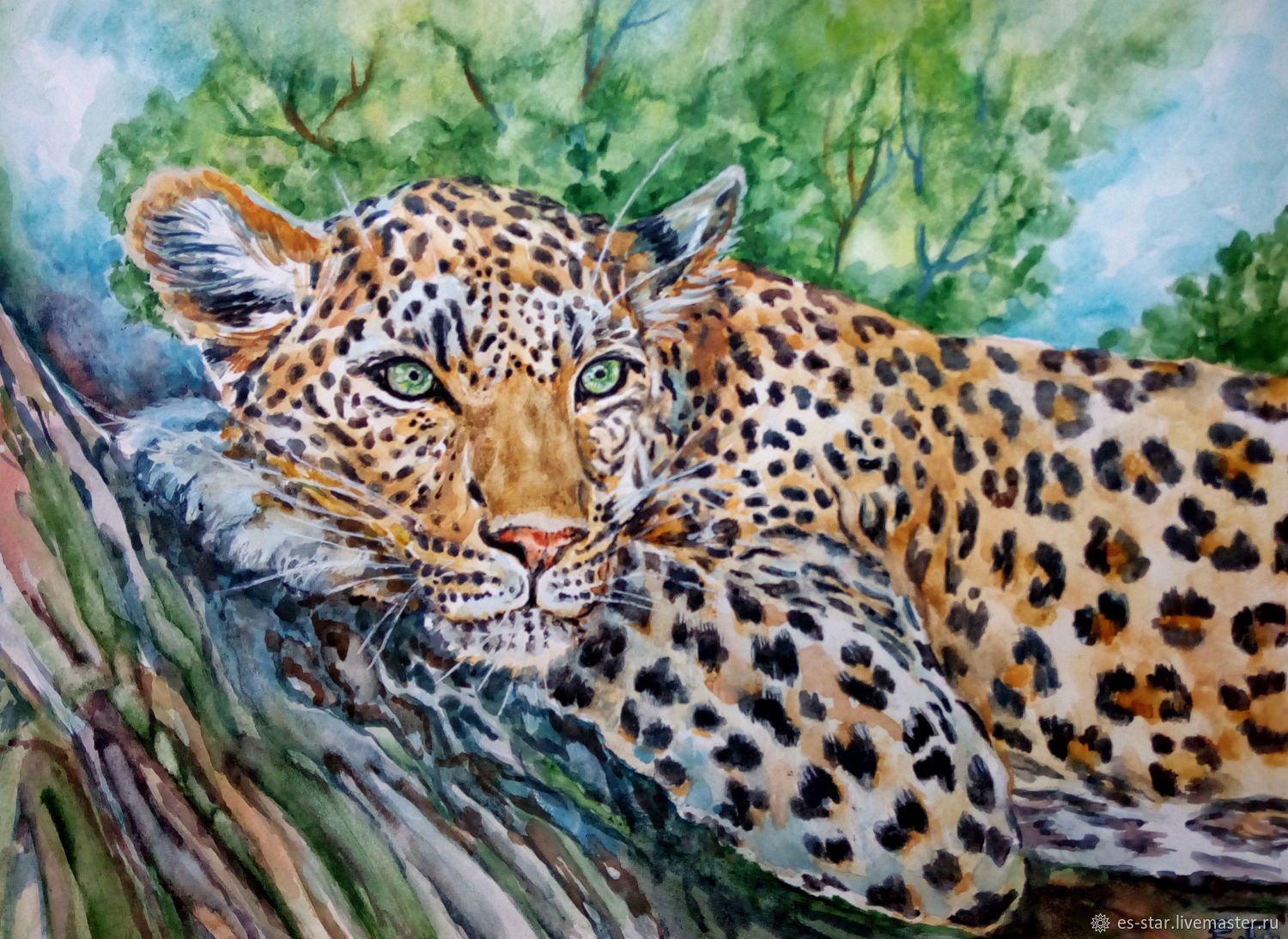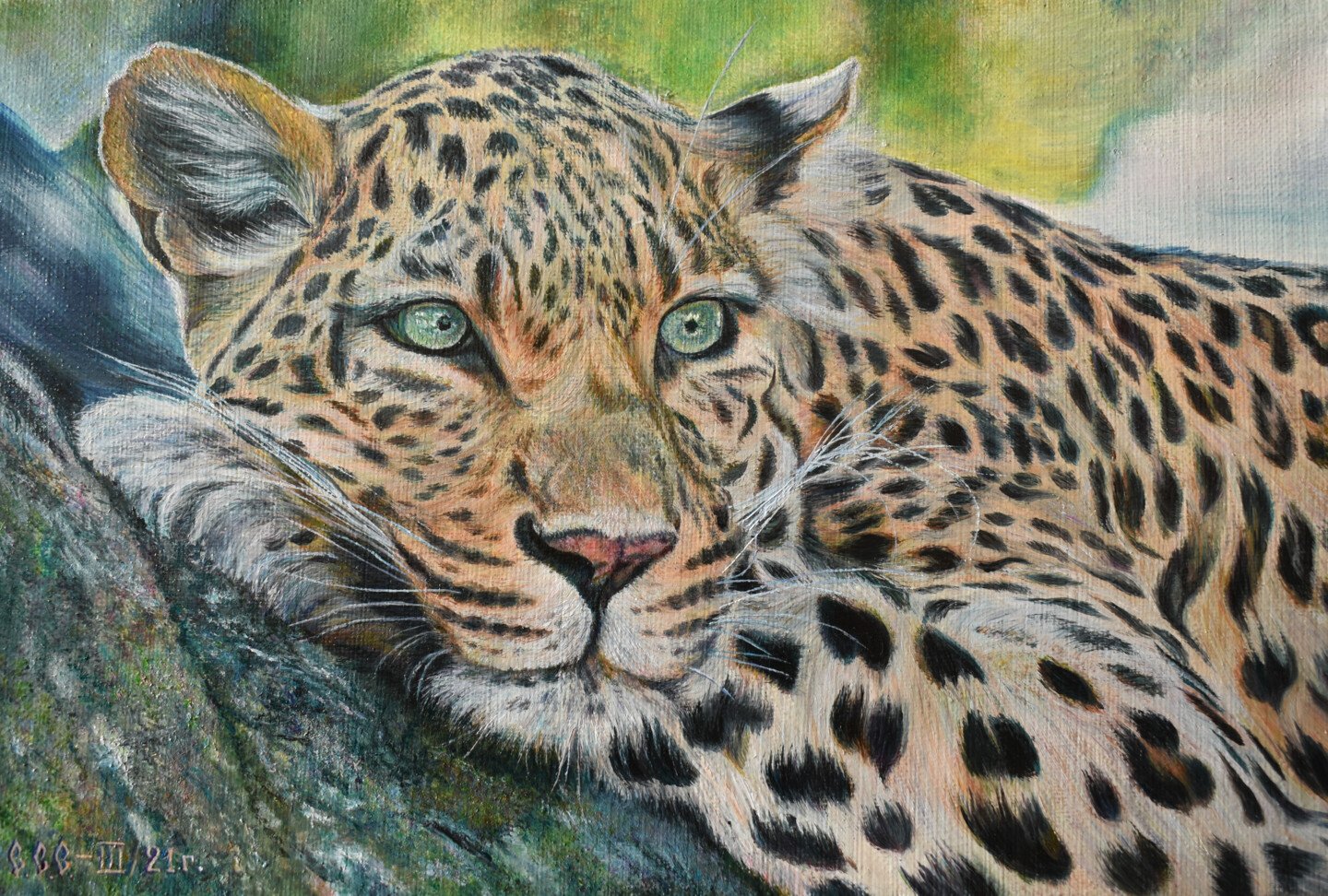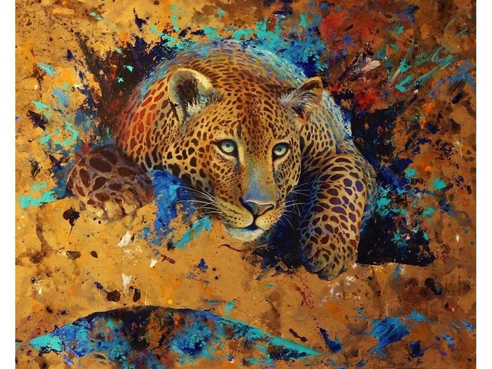 Отдыхающий леопард вышивка крестом купить готовую картину цена