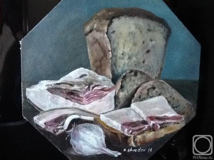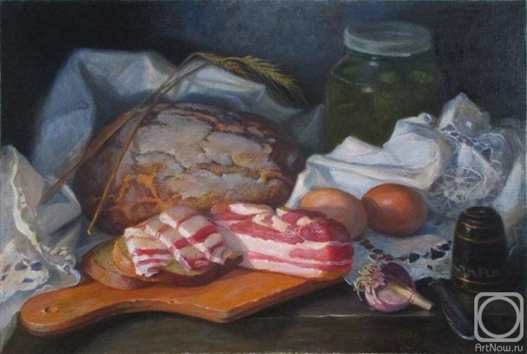 Натюрморт с салом и хлебом