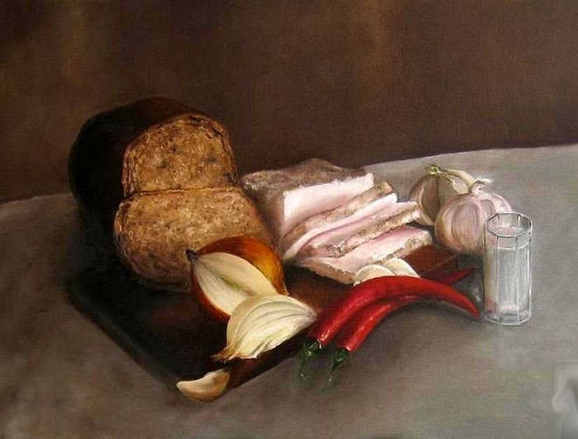 Картина хлеб и сало