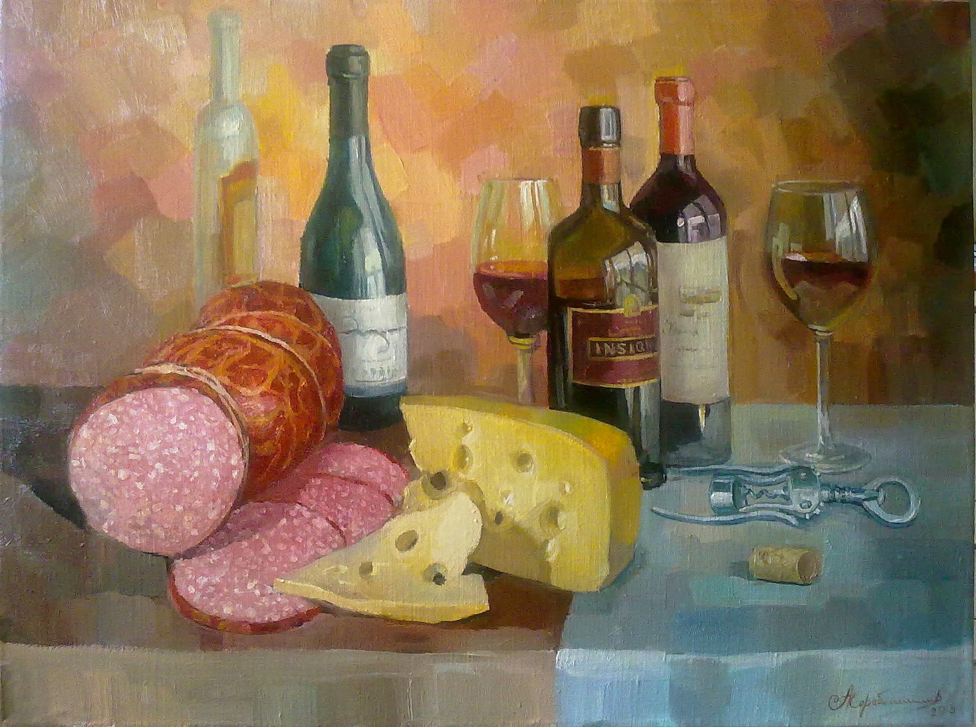 Натюрморт с алкоголем и закуской