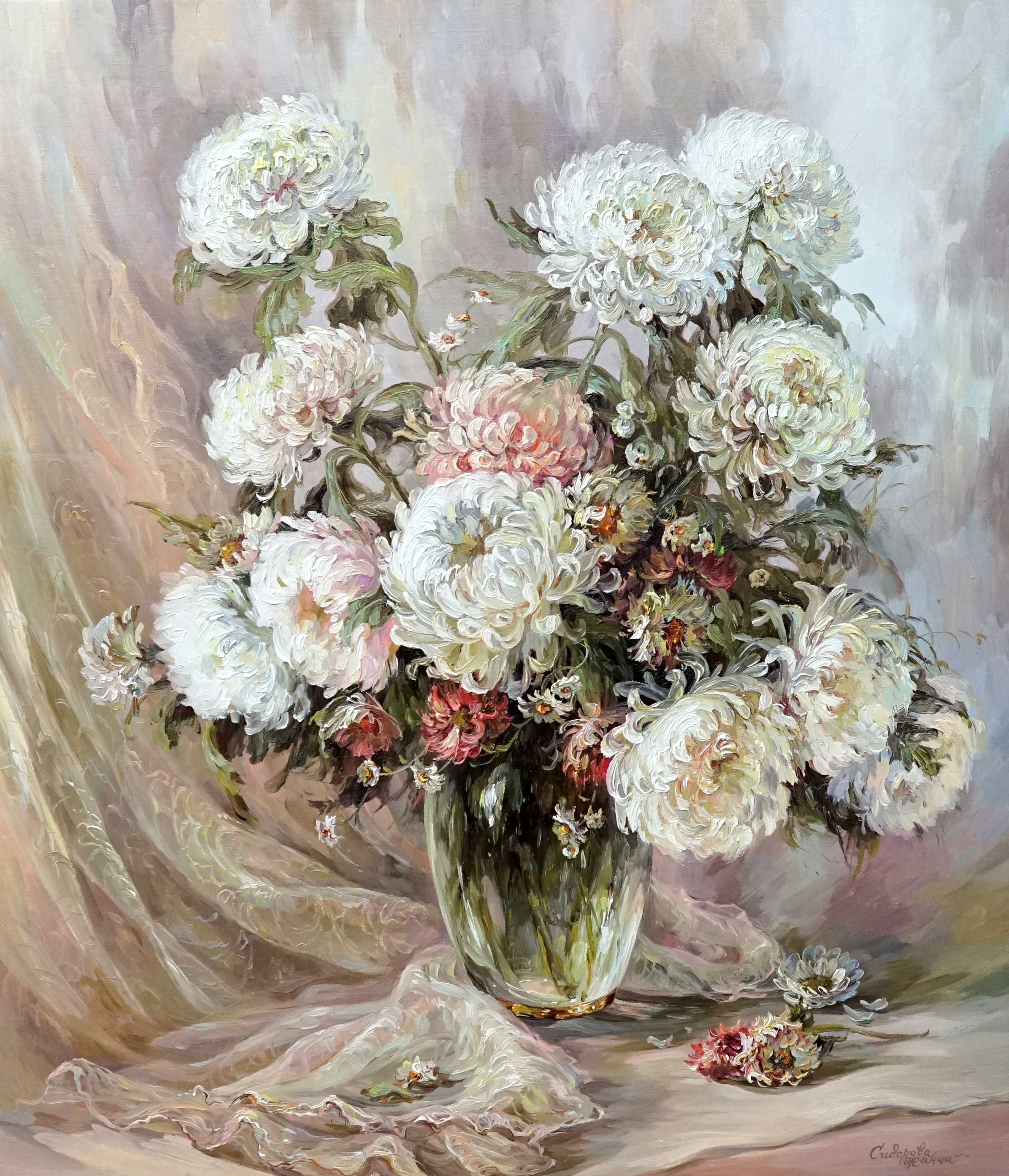 Картины Анастасии Бесединой хризантемы