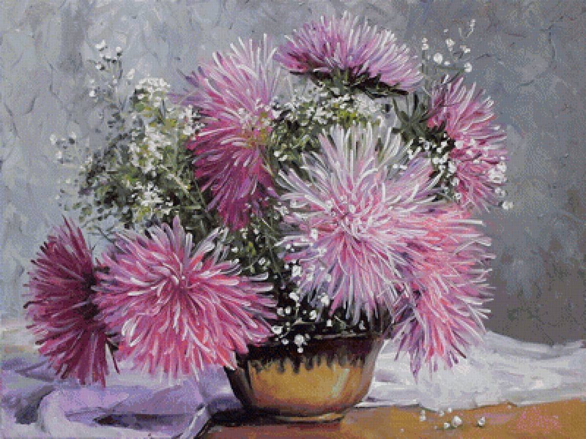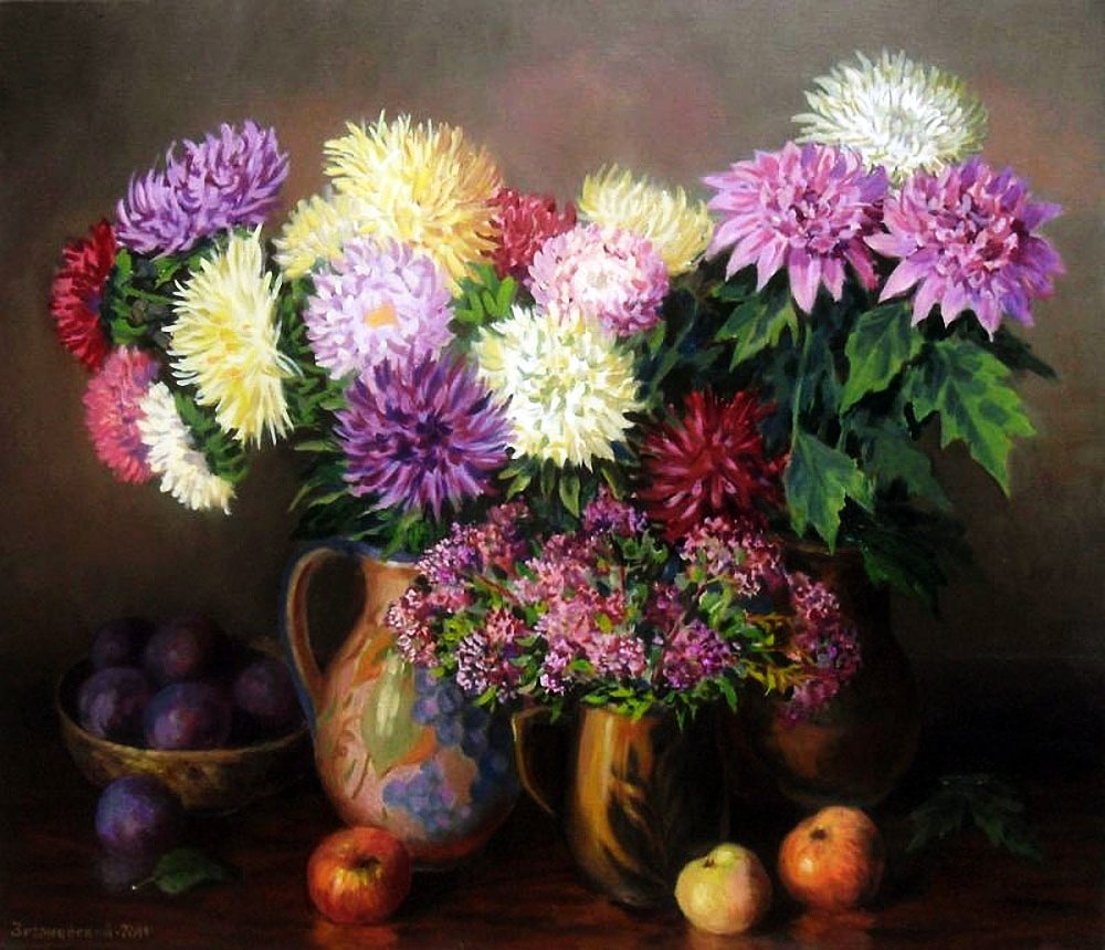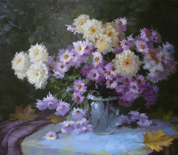 Астры Дубки хризантемы живопись