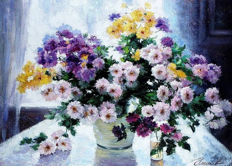 Олег Буйко Цветочная живопись астры хризантемы