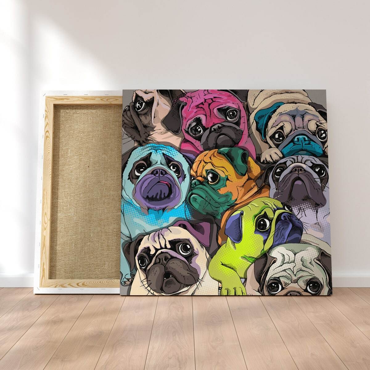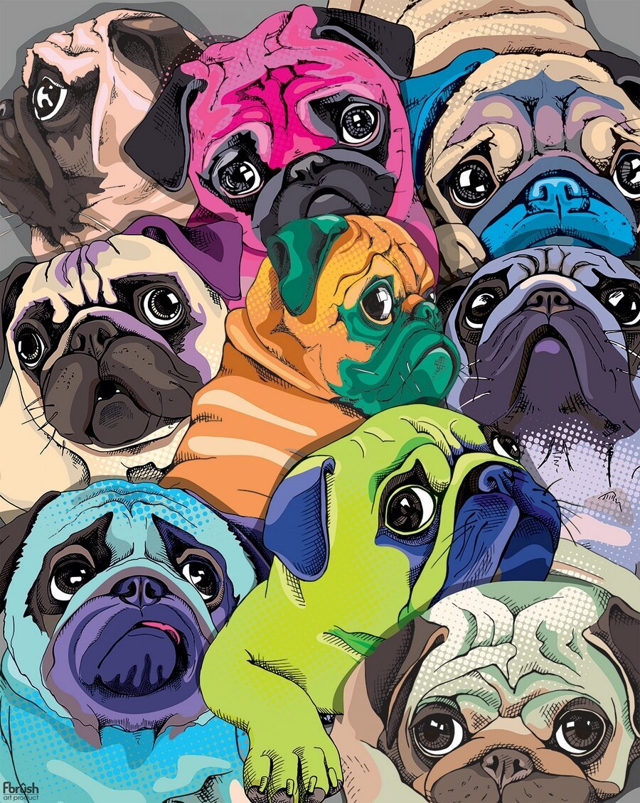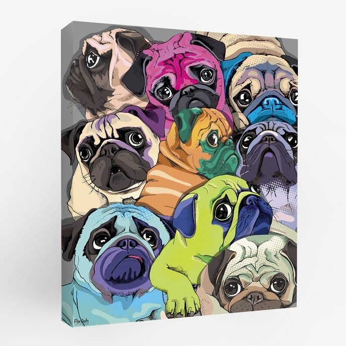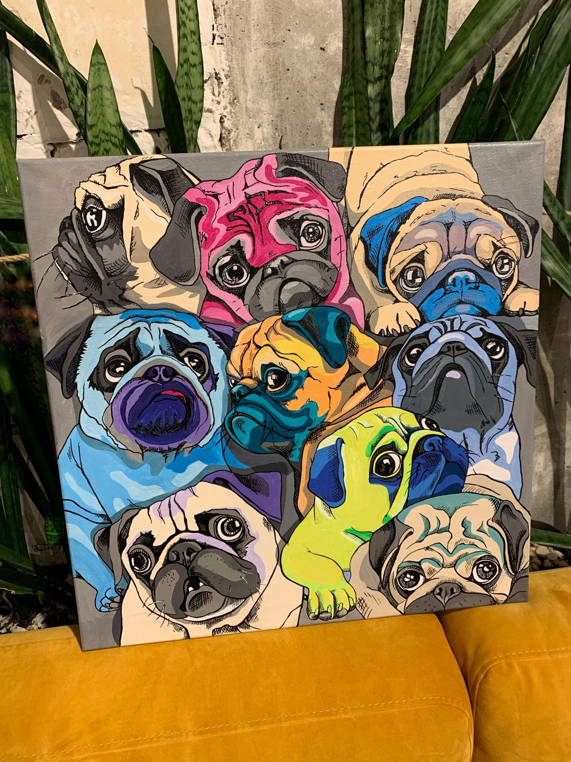Картина цветные мопсы