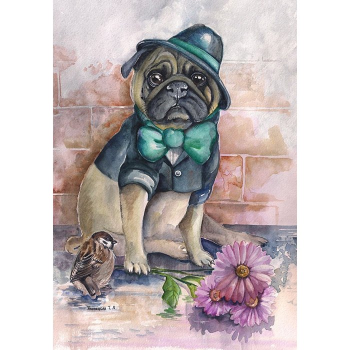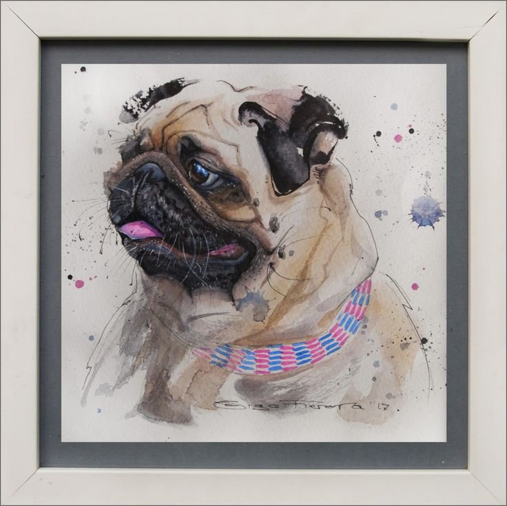 Мопс арт акварель