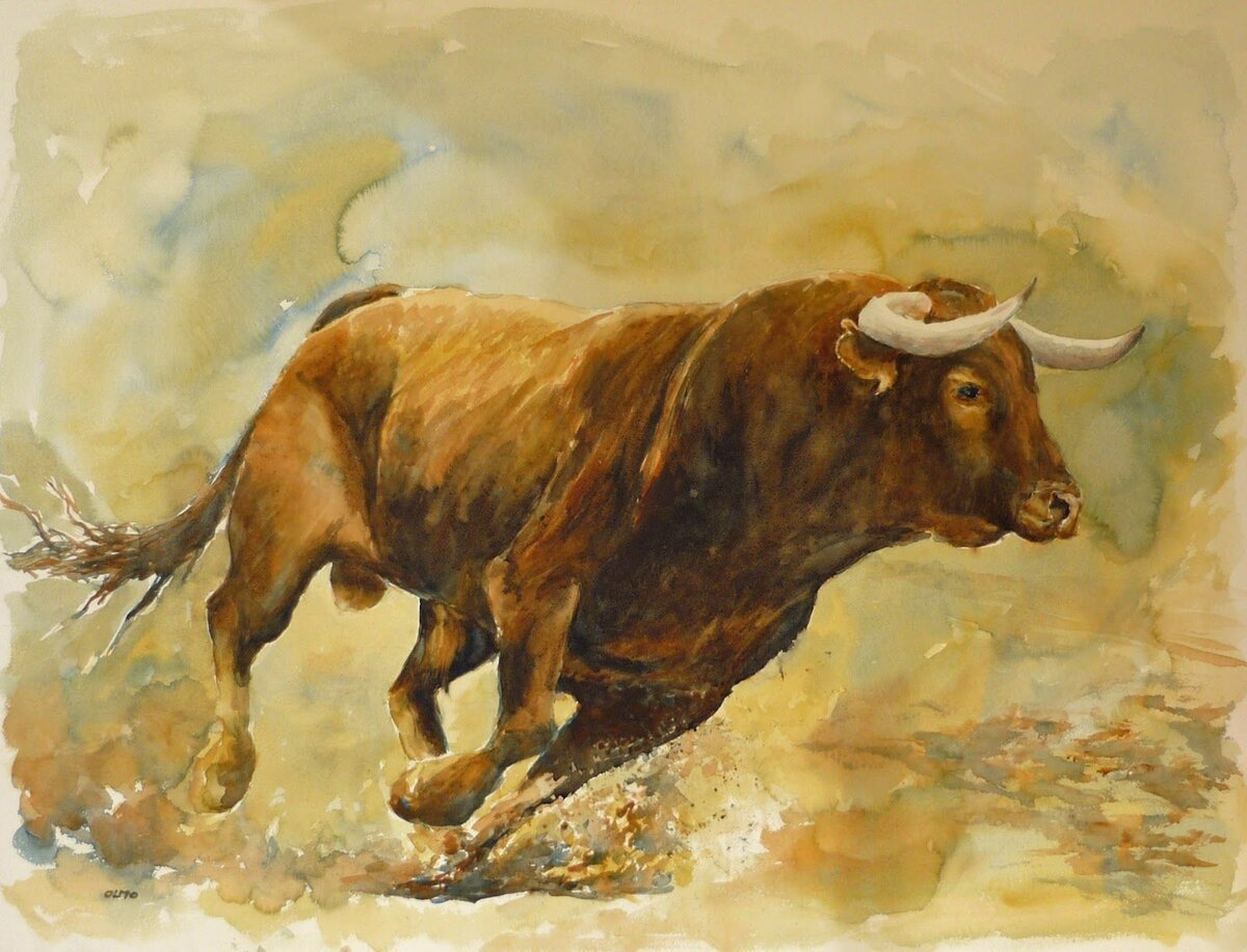 Бык Торо акварель