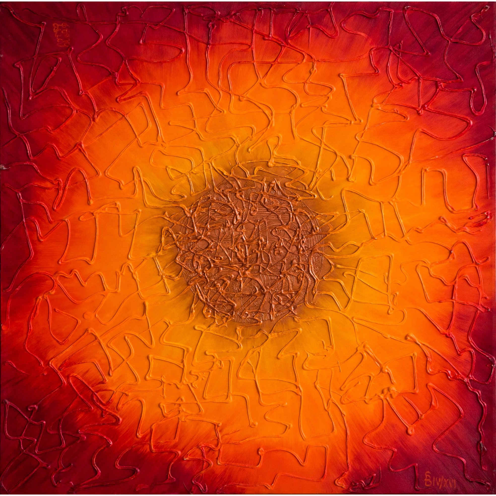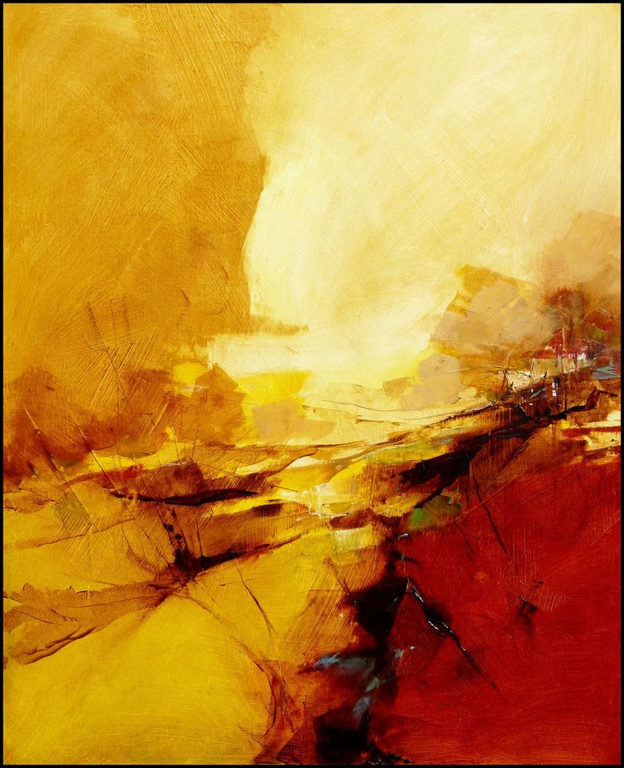 Картина желтый красный абстракция