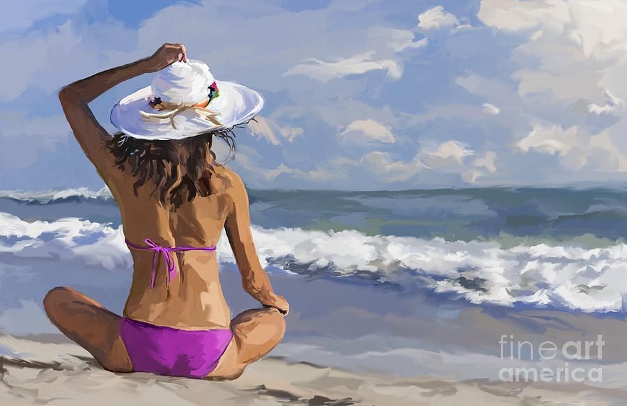 Картина девушка на пляже