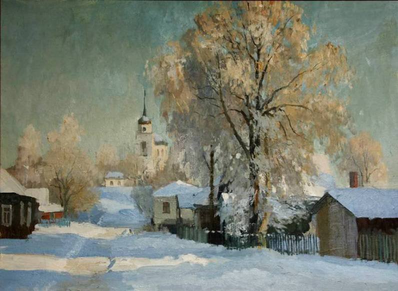 Художник Дмитрий Левин "зимний деревенский пейзаж ".
