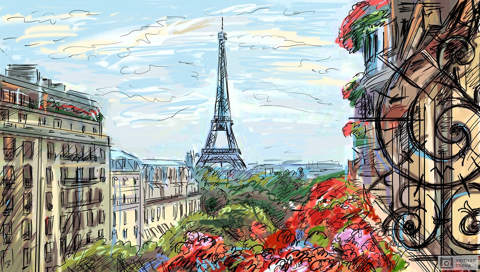 Фреска Париж Эйфелева башня