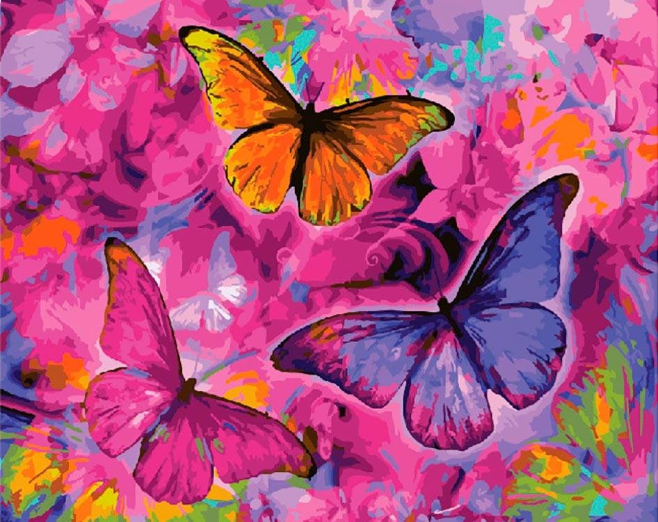 Бабочки акрилом на холсте