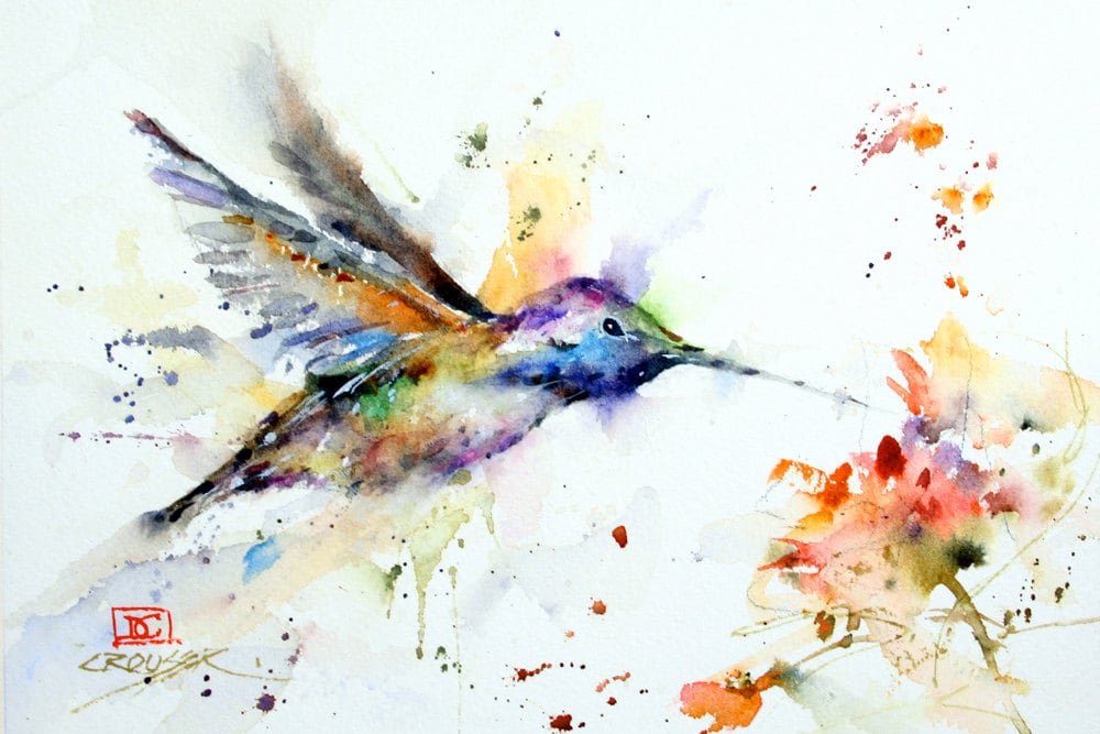 Колибри абстракция акварелью