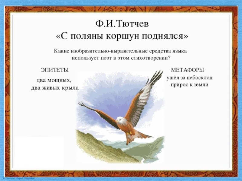 Насыщенный светом полдень на поляне, где возвышается коршун – иллюстрация великолепия природы. Мощный и изящный, он парит в вышине, обозревая просторы своей владении. Перья его нежно-серого цвета переливаются на солнце, создавая завораживающий эффект. Каждое движение этой птицы хищницы наполнено грацией и решимостью. Когда коршун поднимается в воздух, словно душа ощущает свободу и трансцендентальную красоту окружающего мира. Взгляд его глубок и проницателен, словно он видит внутреннюю сущность всего живого. Иллюстрация с поляны коршун поднялся Тютчев – это не только отражение природной гармонии, но и символ величия и мудрости, который вдохновляет и возносит душу к высшим сферам.