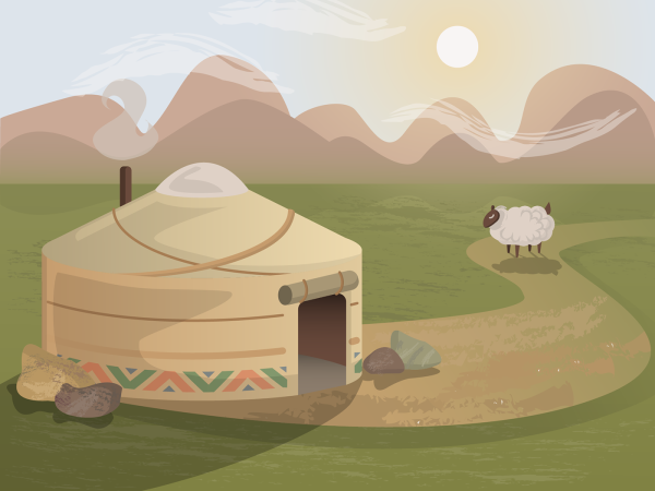 Иллюстрация юрты - это потрясающая возможность погрузиться в уникальную и традиционную культуру кочевников Центральной Азии. Юрта, традиционное жилище народов Казахстана, Киргизии и Монголии, представляет собой переносную шатровую постройку, созданную из деревянного каркаса, покрытого войлоком и шкурами животных. Она служит не только местом для проживания, но и символом гостеприимства, тепла и уюта. Иллюстрации юрты могут быть выполнены в разных стилях и техниках, от реалистических до абстрактных, и замечательно подходят для использования в декоре интерьера, на постерах или открытках, чтобы добавить экзотическую нотку в обстановку. Такая иллюстрация представляет собой настоящее путешествие в прошлое и обеспечивает незабываемые эмоции и впечатления.