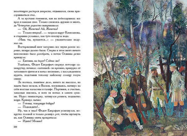 Иллюстрации а зори здесь тихие - это прекрасная книга, наполненная незабываемыми образами и глубокими эмоциями. В ней каждая страница словно оживает благодаря великолепным иллюстрациям, которые переносят читателя в захватывающий мир военных времен. Каждый кадр пропитан тихой меланхолией, передавая не только физическую силу и доблесть героев, но и их внутренний мир, страдания и надежды. Иллюстрации являются настоящим произведением искусства, дополняющим и расширяющим текст, позволяя окунуться в историю полностью. Отлично подобранный стиль и тон каждой иллюстрации создают особое настроение, усиливают эмоциональную составляющую произведения и делают его по-настоящему незабываемым чтением.