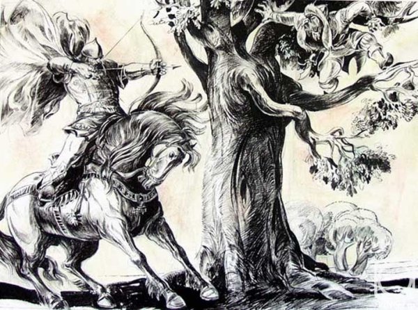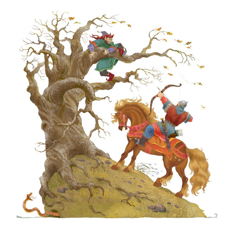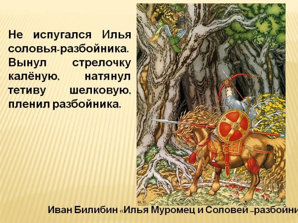 Иллюстрация "Илья Муромец и Соловей-Разбойник" является удивительным произведением, которое отражает русскую народную сказку о богатыре Илье Муромце и его непокорном попутчике - Соловье-Разбойнике. На этой иллюстрации мы видим изображение Ильи Муромца, великого героя, сильного и храброго, который сражается с врагами и защищает свою родину. Рядом с ним находится Соловей-Разбойник, легкокрылый и хитрый, который помогает Илье Муромцу в его подвигах. Иллюстрация полна ярких красок и деталей, оживляя сказочный мир и передавая эпический характер данной истории. Она вызывает восхищение и вдохновение, позволяя зрителю окунуться в удивительные приключения и сопереживать героям. Эта иллюстрация является не только прекрасным произведением искусства, но и воплощением духа русской народной мифологии и красоты русской сказки.