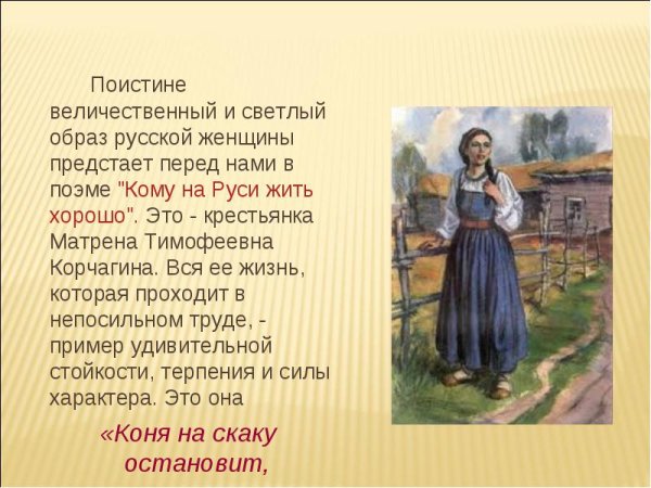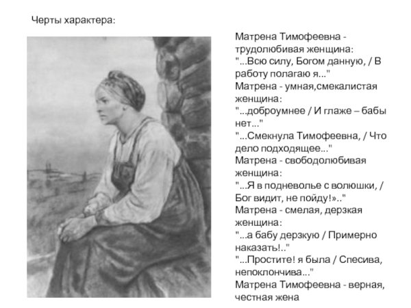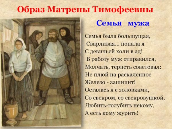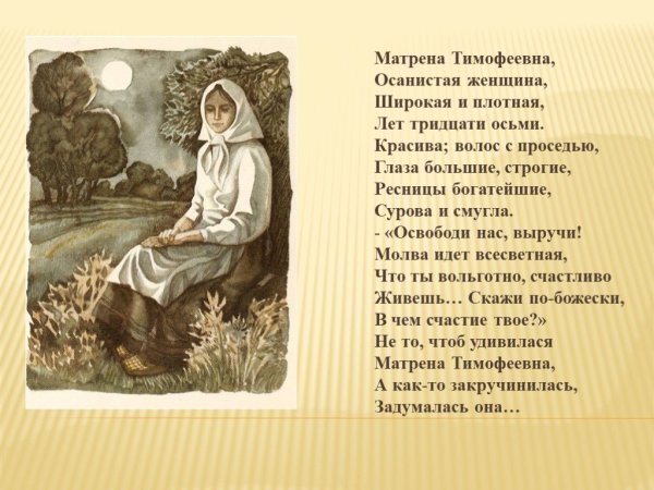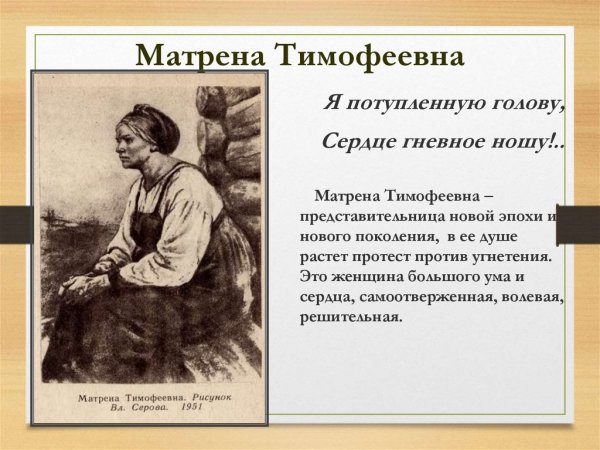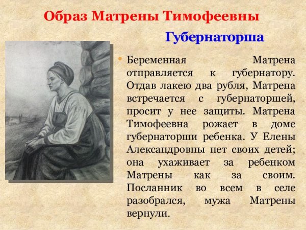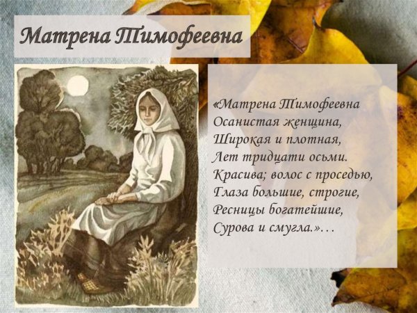 Иллюстрация Матрены Тимофеевны - это яркий и выразительный способ визуализировать этого знаменитого персонажа. Она позволяет увидеть ее красочный образ и передать всю глубину ее характера. На иллюстрации можно увидеть Матрену с ее характерными чертами: круглое лицо, небольшие глаза и красные щеки. Ее одежда также отображается с большим вниманием к деталям - это обычно простое и скромное платье, которое подчеркивает ее скромность и трудолюбие. Иллюстрация Матрены Тимофеевны помогает погрузиться в ее мир и лучше понять ее роль в литературном произведении или истории.