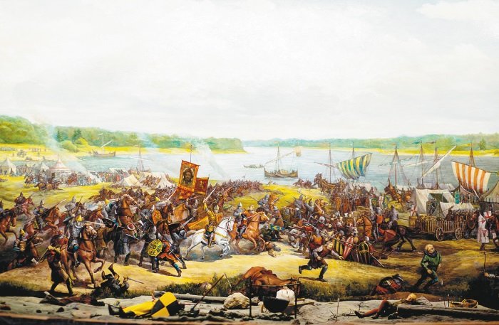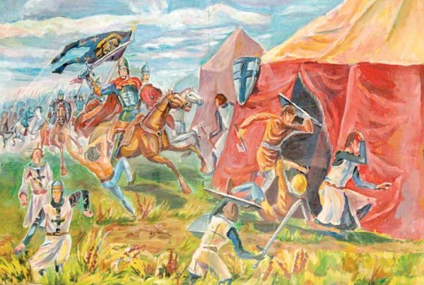 Иллюстрации "Невская битва" – великолепное художественное воплощение знаменитого исторического сражения, произошедшего на реке Нева в 1240 году. Эти картины захватывают взгляд зрителей и переносят их в эпоху средневековой Руси. Каждая деталь изображений тщательно проработана: мощные кони, воины в доспехах, яркие цвета и динамичные композиции создают неповторимую атмосферу битвы. Иллюстрации "Невская битва" не только передают исторический факт, но и выражают силу духа и отвагу русского народа в борьбе за свою землю. Они станут прекрасным украшением любого интерьера и напомнят о героическом прошлом нашей страны.