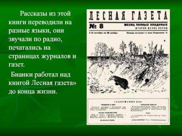 Бианка лесная газета, известная своими красочными иллюстрациями, представляет уникальное слияние слов и изображений, погружая читателей в захватывающий мир природы. Каждая страница этой журнальной газеты оживает благодаря талантливым художникам, которые передают красоту и разнообразие лесных ландшафтов, а также обитателей дикой природы. Благодаря этому, Бианка становится незаменимым источником информации для любителей природы, детей и взрослых. Иллюстрации оживают перед глазами читателей, вызывая эмоции и интерес к изучению окружающего мира. Великолепные иллюстрации Бианки лесной газеты превращают чтение в настоящее путешествие в мир дикой природы.
