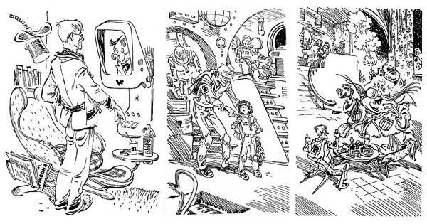 Иллюстрации к советской фантастике представляют собой уникальное и неповторимое творчество, которое олицетворяет дух времени и культурные особенности эпохи. Эти изображения являются неотъемлемой частью литературных произведений и служат визуальным дополнением к фантастическим мирам, созданным писателями. Интересно отметить, что иллюстраторы сочетали в своих работах элементы научной фантастики, социализма и национальной идеологии, создавая уникальный стиль, который до сих пор вызывает интерес и восхищение у любителей фантастики. Отличительной чертой иллюстраций советской фантастики является их яркая и живая цветовая гамма, которая в сочетании с фантастическими элементами создает неповторимую атмосферу и загадочность.
