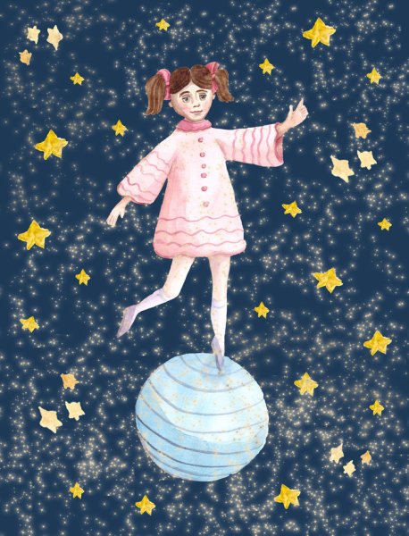 Девочка на шаре - это захватывающая иллюстрация, которая перенесет вас в мир фантазий и приключений. На этой картине изображена милая девочка, качающаяся на огромном цветном шаре. Ее яркие глаза и улыбка наполняют рисунок радостью и невинностью. Она словно парит в воздухе, создавая ощущение легкости и свободы. Фон задника оформлен в виде раскрашенных облаков и пушистых снежинок, что добавляет магии и загадочности сюжету. Эта иллюстрация подходит для использования в книгах для детей, а также может стать отличным элементом дизайна для детских комнат или игровых зон. Приглашаем вас окунуться в волшебный мир детского воображения с этой прекрасной иллюстрацией "Девочка на шаре".