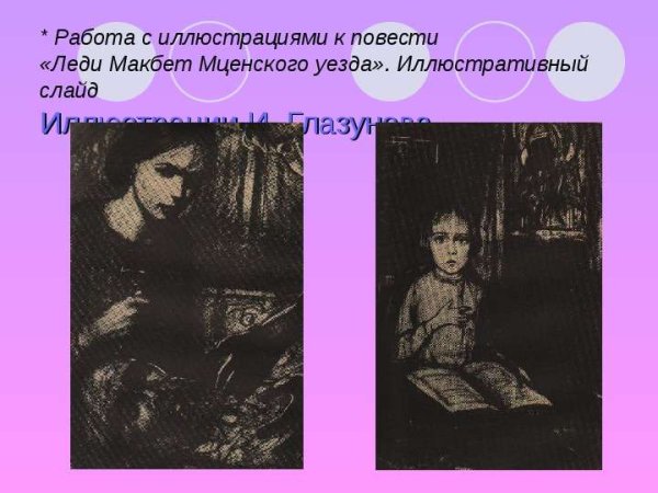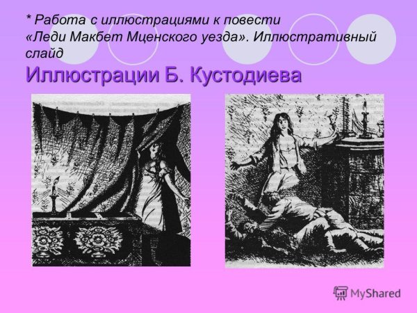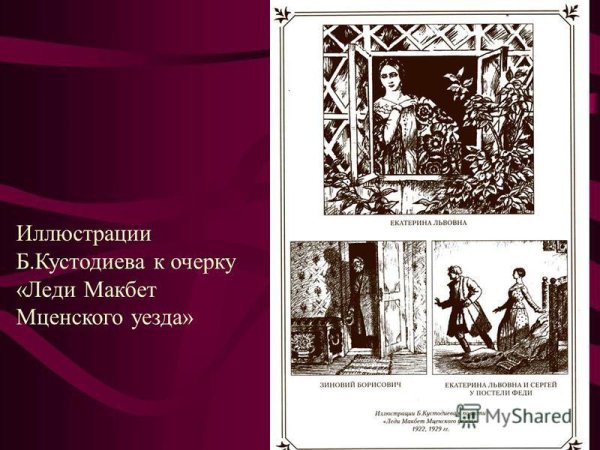 Одним из наиболее известных произведений русской классической литературы является роман "Леди Макбет Мценского уезда" А. Н. Островского. Это захватывающая история о жизни и страданиях Катерины Львовны, жены богатого землевладельца в маленьком городке. Иллюстрации к этому произведению являются неотъемлемой частью его образовательной и эстетической ценности. Они помогают визуализировать события и персонажей, а также передать настроение и атмосферу произведения. Иллюстрации могут быть выполнены в различных стилях и техниках, от классических черно-белых рисунков до ярких и экспрессивных цветных композиций. Все они служат для того, чтобы погрузить читателя в мир романа и помочь ему лучше понять и интерпретировать сюжет и символы. Иллюстрации к "Леди Макбет Мценского уезда" – это прекрасное дополнение к самому произведению, которое может быть наслаждением для глаз и помощником в его изучении.
