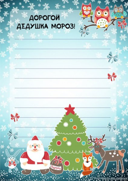 Дед Мороз - волшебный и добрый старик, который каждый год приносит радость и счастье детям. Вокруг него всегда царит праздничная атмосфера, наполненная магией и волшебством. Иллюстрация, изображающая письмо детей Деду Морозу, позволяет окунуться в волшебный мир новогоднего волшебника, где мечты сбываются. На рисунке можно увидеть блестящую почтовую коробку, наполненную письмами и открытками от маленьких мальчиков и девочек со всего мира. Яркие цвета и улыбающиеся лица детей создают ощущение сказки и волшебства. Эта иллюстрация напоминает нам о важности веры в чудеса и о том, что самые заветные желания могут исполниться, если мы только верим в них и просим об этом у Деда Мороза.
