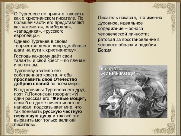 Тургенев - великий русский писатель XIX века, чьи произведения до сих пор покоряют сердца читателей. Одним из его наиболее знаменитых романов является "Живые мощи". В этой книге автор раскрывает сложные отношения между людьми, вызывая у читателя самые разнообразные эмоции. Особую ценность в этом произведении придают иллюстрации, которые помогают визуализировать описанные события и проникнуться атмосферой произведения еще глубже. Иллюстрации создают особый мир, где можно видеть персонажей Тургенева во всей их красе и остроте. Они подчеркивают важность каждого детали, будь то выразительное лицо или красочный пейзаж. Благодаря ним, читатель может лучше понять и воспринять произведение, вникнуть в его смысл и насладиться всей его глубиной и красотой. "Живые мощи" с иллюстрациями - это настоящий шедевр, который не оставит равнодушным ни одного любителя литературы и изобразительного искусства.